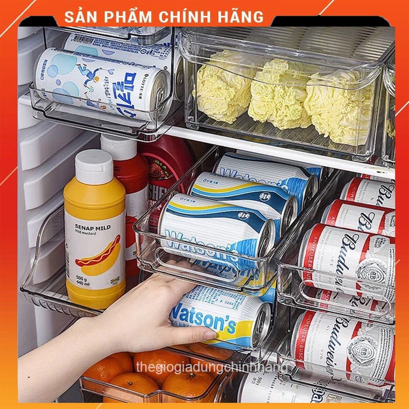 Khay hộp đựng lon nước ngọt, bia trong tủ lạnh thiết kế 2 tầng trong suốt tiện lợi
