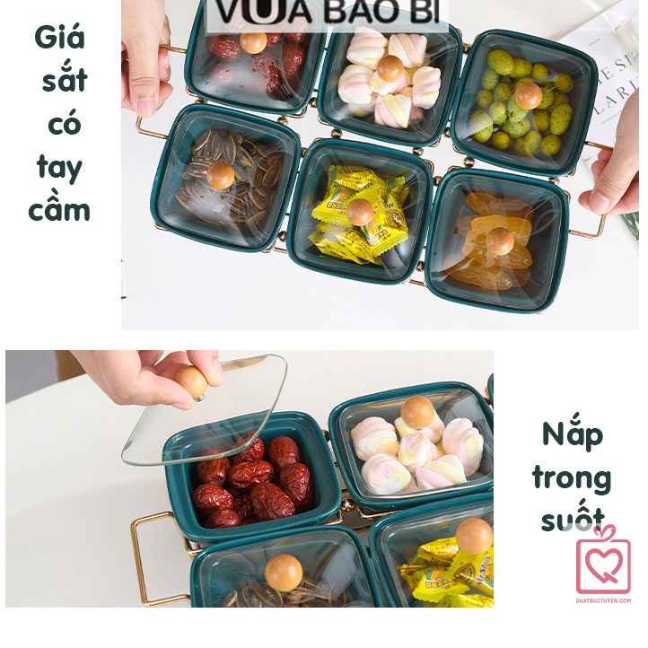 Nhà Cửa & Đời Sống > Đồ dùng nhà bếp và hộp đựng thực phẩm > Hộp, túi đựng thực phẩm > Khay mứt hũ đựng bánh kẹo hoa quả nắp Trong Suốt, hộp đựng hạt khô thực phẩm giá sắt sang trọng VUABAOBI