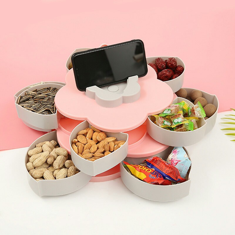 Nhà Cửa & Đời Sống > Đồ dùng nhà bếp và hộp đựng thực phẩm > Hộp, túi đựng thực phẩm > Khay Mứt Tết, Khay Bánh Kẹo Tết 2 Tầng Có Khe Cắm Điện Thoại Tiện Lợi 2 Tầng và 1 Tầng