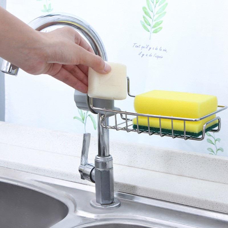 Khay (Rổ) Để Đồ Bồn Rửa Chén - Giá Kệ Kim Loại Đựng Giẻ Rửa Chén Gắn Vòi Rửa Bát