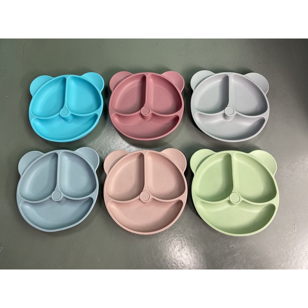 Giới thiệu Khay Silicon Cao Cấp Hình Gấu 3 Ngăn Đế Có 3 Nút Hít Chân Không Chống Đổ Cho Bé Ăn Dặm