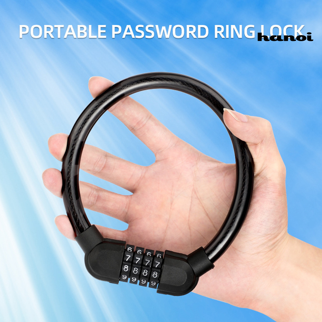 Item Name: Bicycle Ring Lock Material:Steel,PVC,ABS,Zinc Alloy Password: 4 Digit Code Size Details: 14cm x 13cm/5.51" x 5.12" (Approx.) Length(with Lock): 40cm/15.75", Ring Roughness: 11.5cm/4.53" (Approx.)