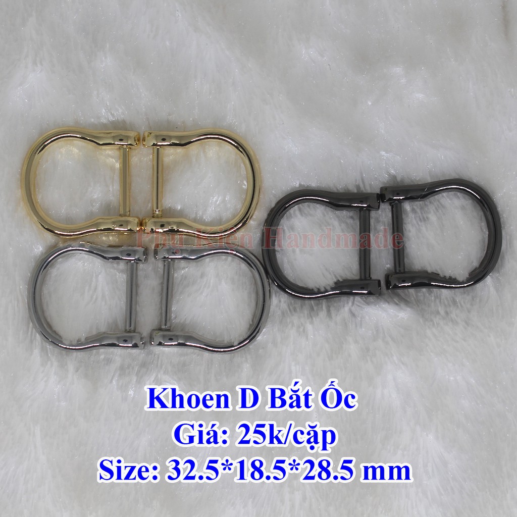 Sản phẩm khoen D bắt ốc dùng trong sản phẩm túi ví handmade, hoặc tùy nhu cầu sử dụng khác của khách hàng, mác chân ghim Chất liệu : Hợp kim kẽm Kích thước : như hình ảnh mô tả Khách hàng có nhu cầu mua số lượng lớn vui lòng inbox shop nhận giá