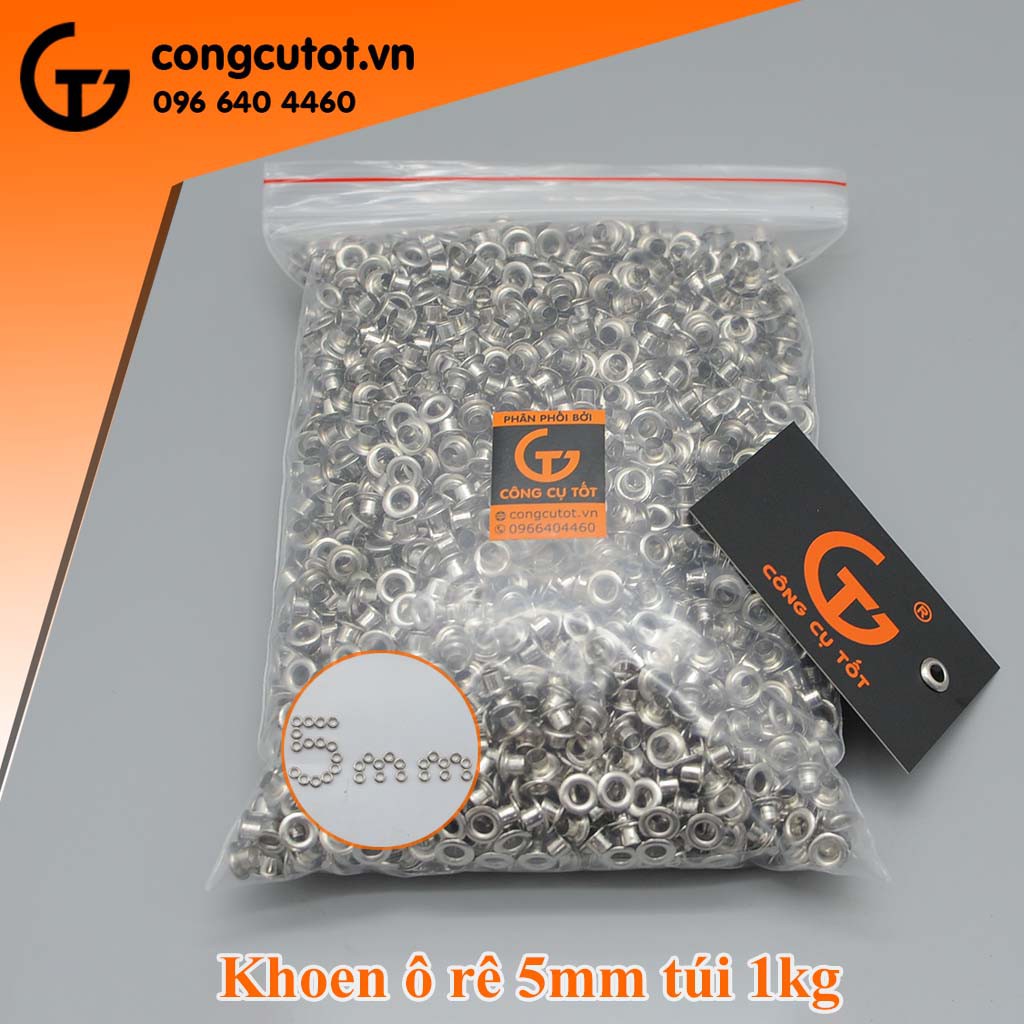 Khoen 5mm là dòng khoen có kích thước phổ biến nhất hiện nay, được các thợ thủ công ưa chuộng nhất bởi nó có kích thước vừa phải, phù hợp với nhiều sản phẩm như quần áo, giày dép, catalog...