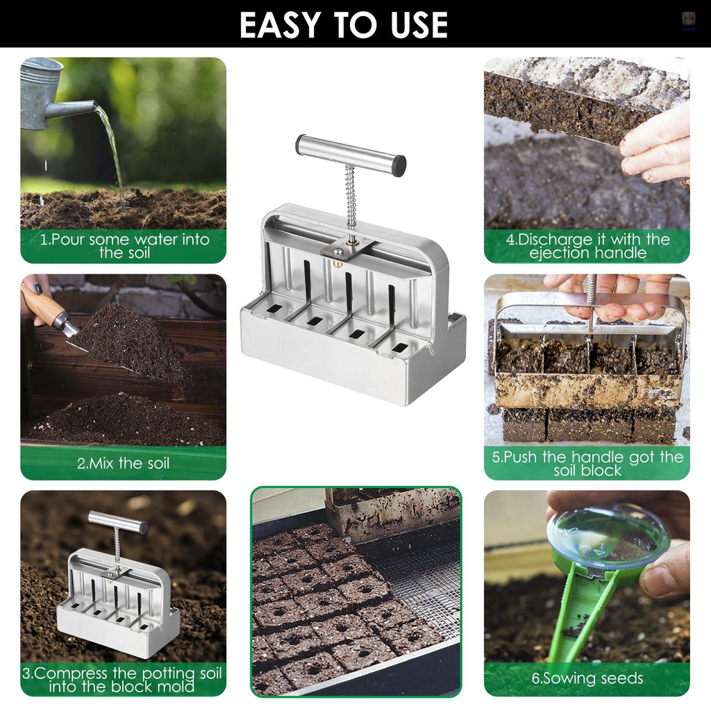 “Dụng cụ làm vườn hữu ích ” Khối đất giúp bạn tạo ra tám khối đất nhỏ 2 inch.Phần trên của mỗi khối đất được tạo sẵn với một hốc hạt để dễ dàng gieo hạt.