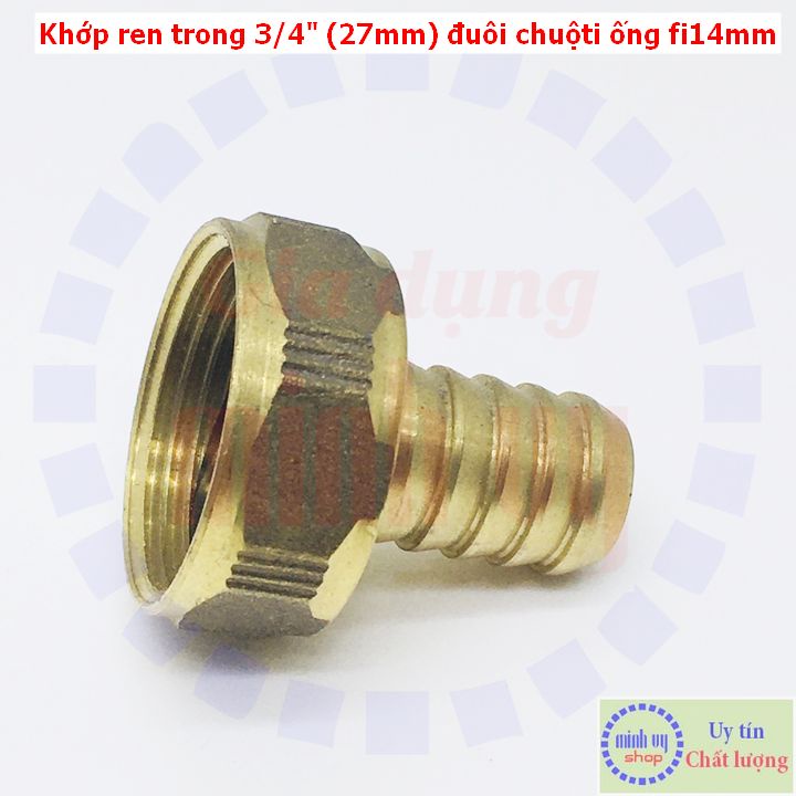 Chất liệu: đồng thau Đầu ren: 1 đầu trong 3/4" (ren 27) 1 đầu đuôi chuột nối ống fi 14 Ứng dụng: nối ống fi 14 ra ren trong 3/4inch (ren 27)