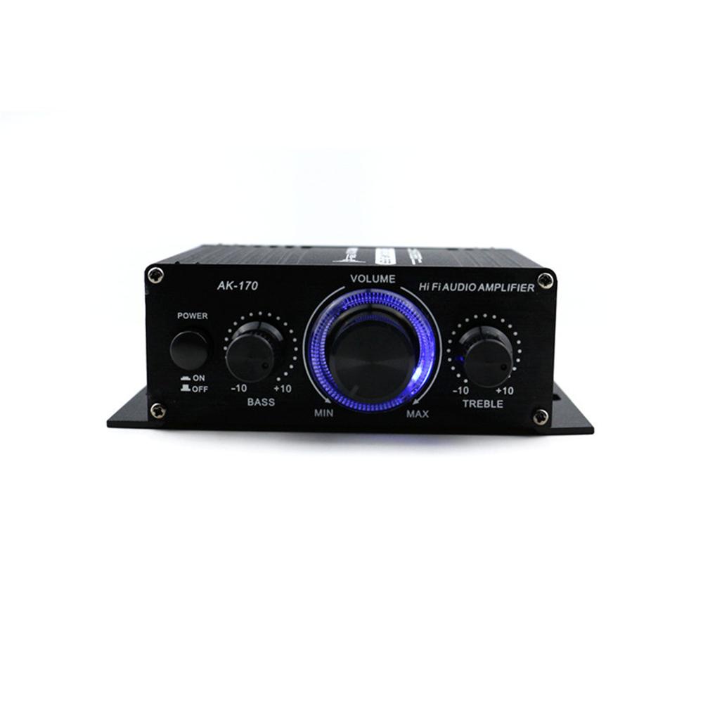 Mô hình “ AK170 Màu Balck Chất liệu - Hợp kim nhôm Kích thước “ 125X75X40MM Điện áp đầu vào — DC 12V Công suất RMS ' 20W '20W Công suất tối đa “ 200W-200W Kênh “ 2CH Trở kháng tải ' 4-16 Snr > 90 db Tần số ' 20Hz-20KHz Tỷ lệ biến dạng “ 0,01 ” Gói bao gồm '1 x Bộ khuếch đại công suất 'không có bluetooth-Không bao gồm cáp nguồn) Tính năng ' - Bộ khuếch đại công suất âm thanh HIFI Mini. - Thân máy bằng hợp kim nhôm , các núm vặn lớn được thiết kế với đèn LED xanh giúp sản phẩm đẹp và đẹp hơn . - Độ méo thấp cung cấp âm thanh rõ ràng hơn , mạnh hơn và mạnh mẽ hơn . - Hai đầu ra kênh chính Bộ khuếch đại công suất Bộ điều hợp khuếch đại HIFI Công suất âm thanh nổi FM HIFI Âm thanh AMP Âm thanh từ xa Digita Hợp kim nhôm Ô tô tự động AK107 12V 400W Mini