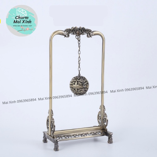 Giới thiệu Bộ Khung Lư Treo Tròn Đồng Đúc Hoa Văn xông, đốt nụ Trầm - Lư Xông Hương Kèm Lót Bông Chống Cháy