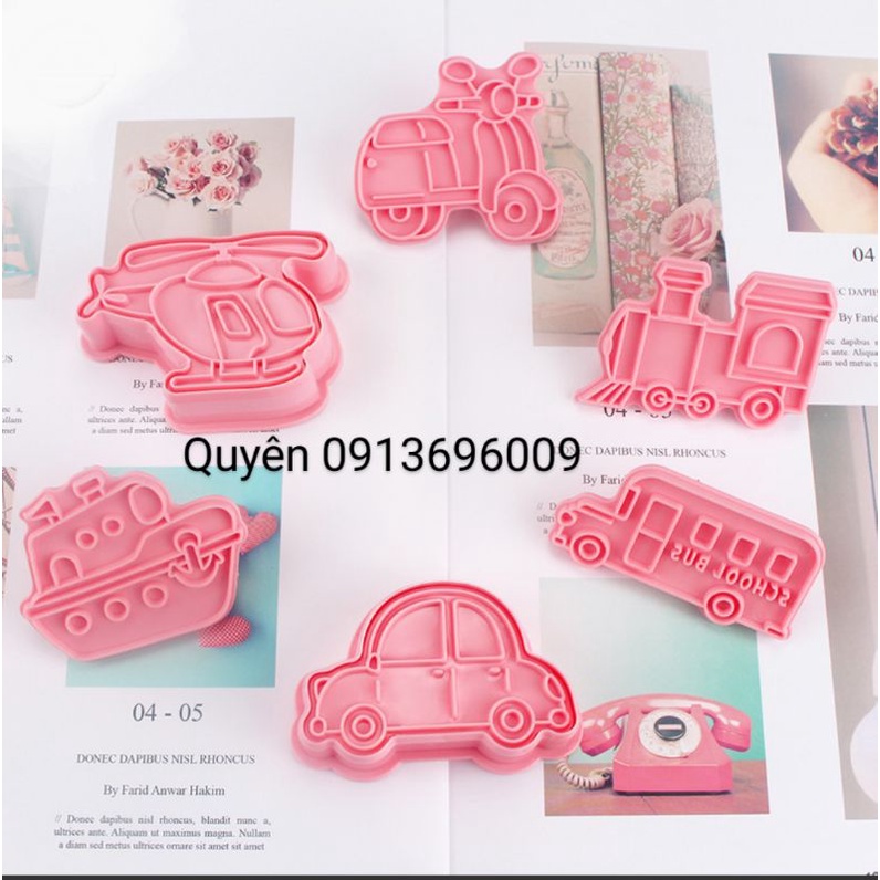 Bộ 6 khuôn làm bánh quy, bánh cookies PHƯƠNG TIỆN VẬN TẢI Chất liệu: nhựa an toàn Bộ khuôn được thiết kế sắc nét, xinh xắn -------------------------------------------------------- BÍ ĐỎ SHOP *Tel/zalo: 0913696009 *ĐC: 751/4 Kha Vạn Cân, Kp.3, Linh Tây, Thủ Đức * Mở cửa: 9h30 -20h00 mỗi ngày. * Fb: phuongquyennguyen886 * Trang Fb 1: Bí đỏ Shop - Dụng cụ làm bánh * Trang Fb 2: Bidoshopping Kính chúc Quý khách một ngày tốt lành và may mắn!
