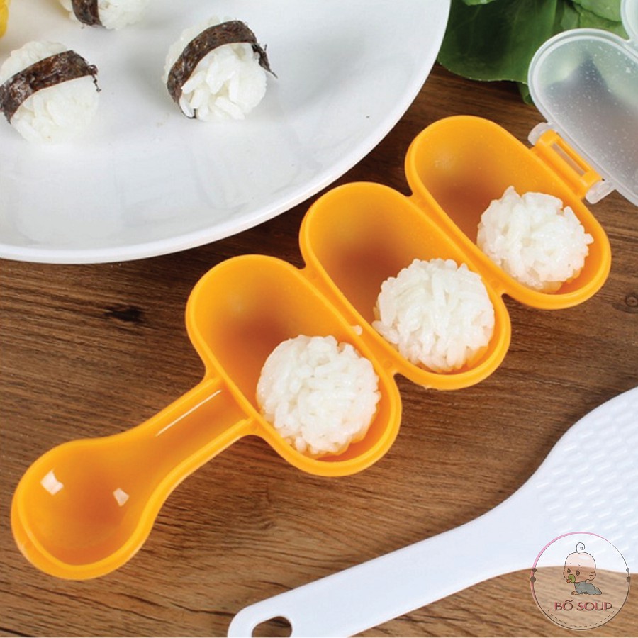 Bộ Khuôn Lắc Cơm Tạo Hình Cơm Nắm Cho Bé Ăn Dặm Kèm Thìa