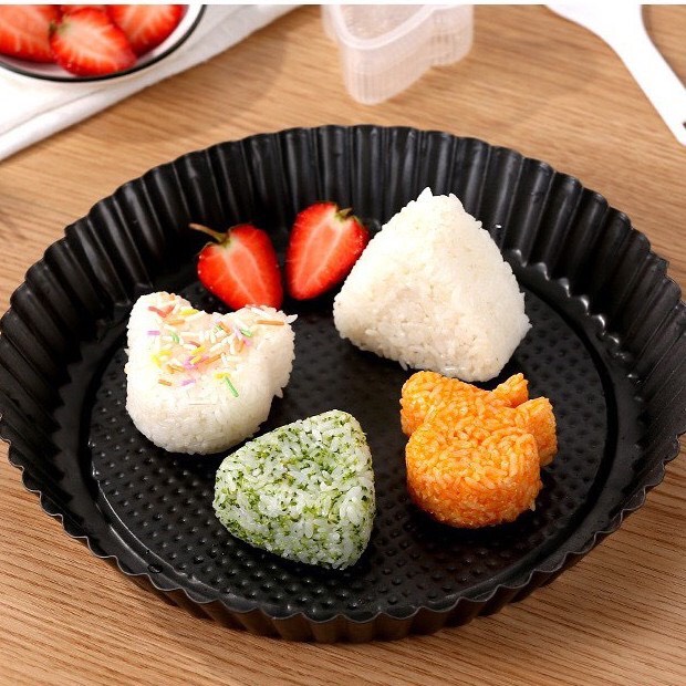 Khuôn Ép Cơm Tạo Hình Cơm Nắm Bento, Khuôn Làm Sushi Origini Phong Cách Nhật Bản Khuôn ép cơm, trứng, bánh tạo hình ngộ nghĩnh là vật dụng nhà bếp tuyệt vời, giúp bạn dễ dàng ép trứng, cơm, bánh thành hình đẹp mắt một cách nhanh chóng và thuận tiện nhất. ------------------------------------------------------ ĐẶC ĐIỂM NỔI BẬT CỦA SẢN PHẨM - Có thể dùng để ép cơm hoặc ép bánh mì có hình dạng đáng yêu thu hút các em bé - Chất liệu nhựa cao cấp, an toàn cho sức khỏe người sử dụng, không ảnh hưởng đến chất lượng đồ ăn - Mang đến những bữa ăn không chỉ ngon miệng mà còn ngon mắt, đặc biệt thích hợp với những gia đình có trẻ em hay những cặp tình nhân đang yêu... - Bộ sản phẩm gồm có 6 khuôn ép cơm hoạt hình khác nhau. - Với khuôn ép cơm hình thú, bé nhà bạn sẽ không còn biếng ăn cũng như sẽ ăn ngon miệng và thích thú hơn. ------------------------------------------------------ THÔNG TIN CHI TIẾT Kích thước: Xem ảnh minh họa Hình dạng: Bao gồm 6 hình cơ bản: gấu, heo peppa, mickey, tim, hoa, tam giác. Mỗi hình gồm 2 miếng ghép độc lập có thể tháo rời
