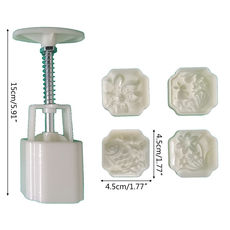 Khuôn làm bánh trung thu bằng nhựa Khuôn làm bánh trung thu Phụ kiện làm bánh tự làm Dụng cụ nhà bếp với 4 tem khác nhau cho lễ hội giữa mùa thu Đặc điểm: Chế độ nhựa áp lực tay không chỉ phù hợp để làm bánh trung thu mà còn có thể sử dụng cho bánh quy tự làm, sô cô la, thạch, bánh ngọt và kẹo. Được làm bằng chất liệu nhựa cấp thực phẩm, an toàn 100% khi tiếp xúc, dễ vệ sinh, có thể tái sử dụng. Không cần cơ sở nướng. Rất dễ sử dụng. Hình dạng được làm rất đẹp, và trông rất tốt với các chi tiết sắc nét. Quà tặng hoàn hảo cho người nội trợ, những người đam mê nấu ăn bánh ngọt. Tay cầm được thiết kế công thái học, không gây cảm giác thoải mái khi ấn. Khuôn bên trong nhẵn, dễ lau chùi.