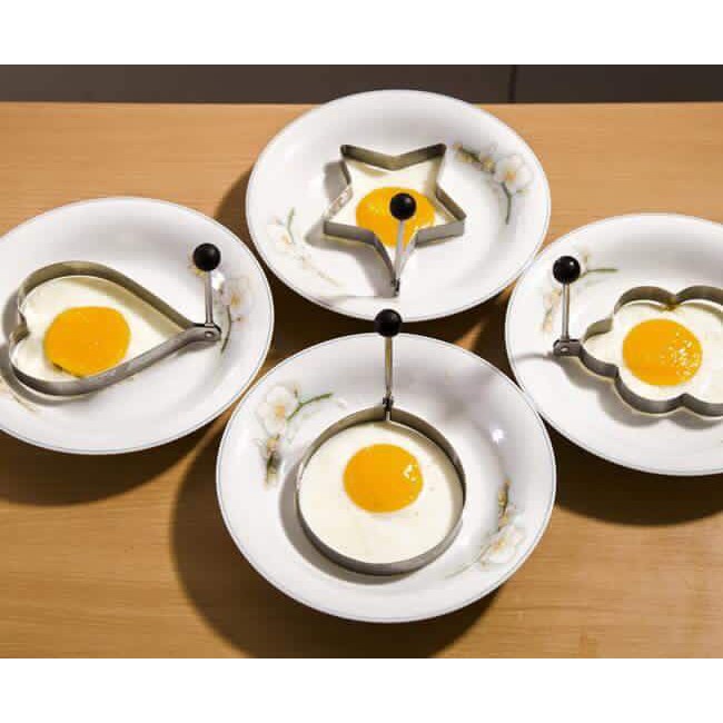 Ốp la là món ăn yêu thích của hầu hết mọi người mọi nhà, chế biến nhanh chóng và nay còn đẹp mắt hơn khi sử dụng bộ khuôn chiên trứng nhiều hình, giúp bữa ăn trông thật ngon mắt 😉 Bộ 4 khuôn chiên trứng làm bánh tạo hình Với bộ 4 khuôn chiên trứng làm bánh tạo hình, món trứng ốp của bạn sẽ tuyệt đẹp. Có các hình trái tim, hình tròn, hình bông hoa, hình ngôi sao. Sử dụng rất đơn giản, bạn chỉ cần cho khuôn lên chảo, cho dầu vào, rồi đập trứng vô là xong. Cùng 1 chiếc chảo, bạn có thể ốp được 4 quả trứng cùng lúc. Thật tiện phải ko nào?!