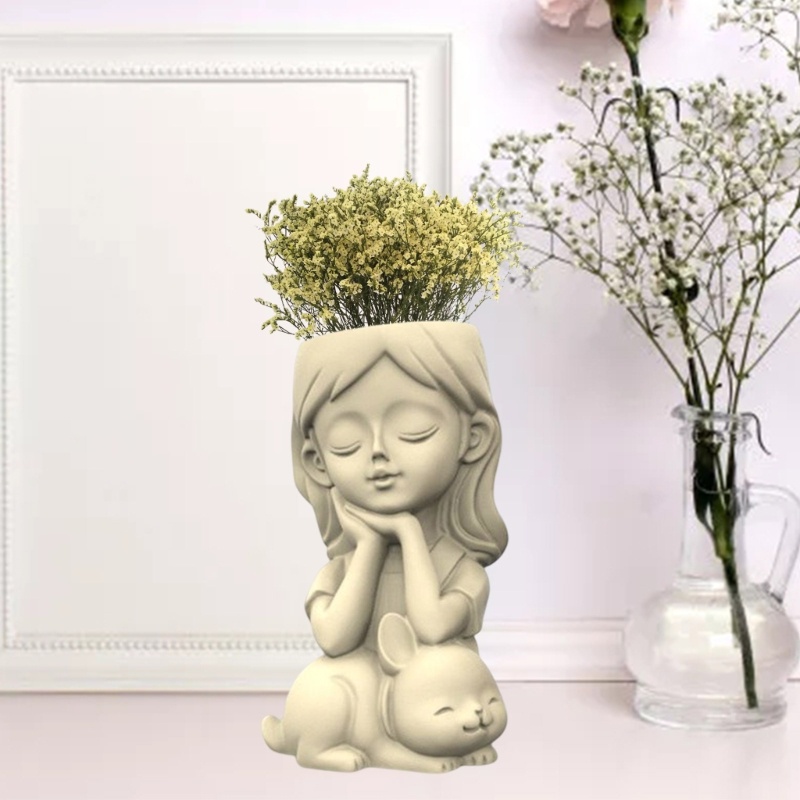 Giới thiệu Khuôn Silicone Làm Chậu Hoa / Ống Đựng Bút Hình Cô Gái / Thỏ Xinh Xắn