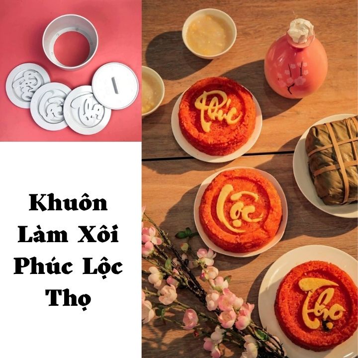 Khuôn xôi cao cấp Phúc Lộc Thọ , Khuôn xôi được làm bằng nhựa cứng chịu lực chịu nhiệt, không phai màu ra sản phẩm. Khuôn xôi chữ Phúc Lộc Thọ là sự lựa chọn của các chị em nội chợ giúp món bánh, món xôi trở nên bắt mắt hơn, ý nghĩa hơn trong các dịp đặc biệt. Đường kính 12cm cao 7cm Cách sử dụng: khuôn xôi thông minh PHÚC - LỘC - THỌ + Khuôn đóng xôi chữ "Phúc - Lộc - Thọ" có kích thước đường kính 12cm, cao 7cm.