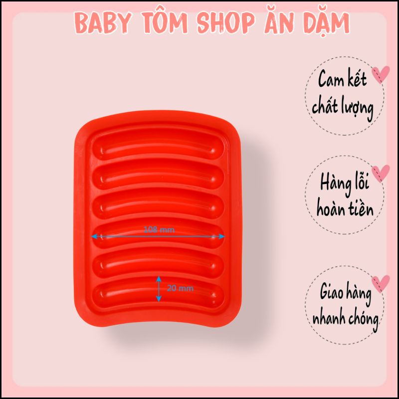 Chất liệu: Silicon - chịu nhiệt cao, an toàn cho bé. Em xin phép giao hàng màu ngẫu nhiên ạ Hấp bánh, hấp trứng có khuôn hấp rồi nay mẹ trổ tài với món xúc xích phiên bản em bé nhé Công thức cơ bản cho món xúc xích như này ạ: ✔ Đạm: mẹ có thể dùng thịt , thịt ức , ✔ Rau củ: mẹ có thể dùng khoai tây, cà rốt, xúp lơ, cải bó xôi. ✔ Chất tăng kết dính có: lòng đỏ trứng, bột mì hoặc bột ngô.
