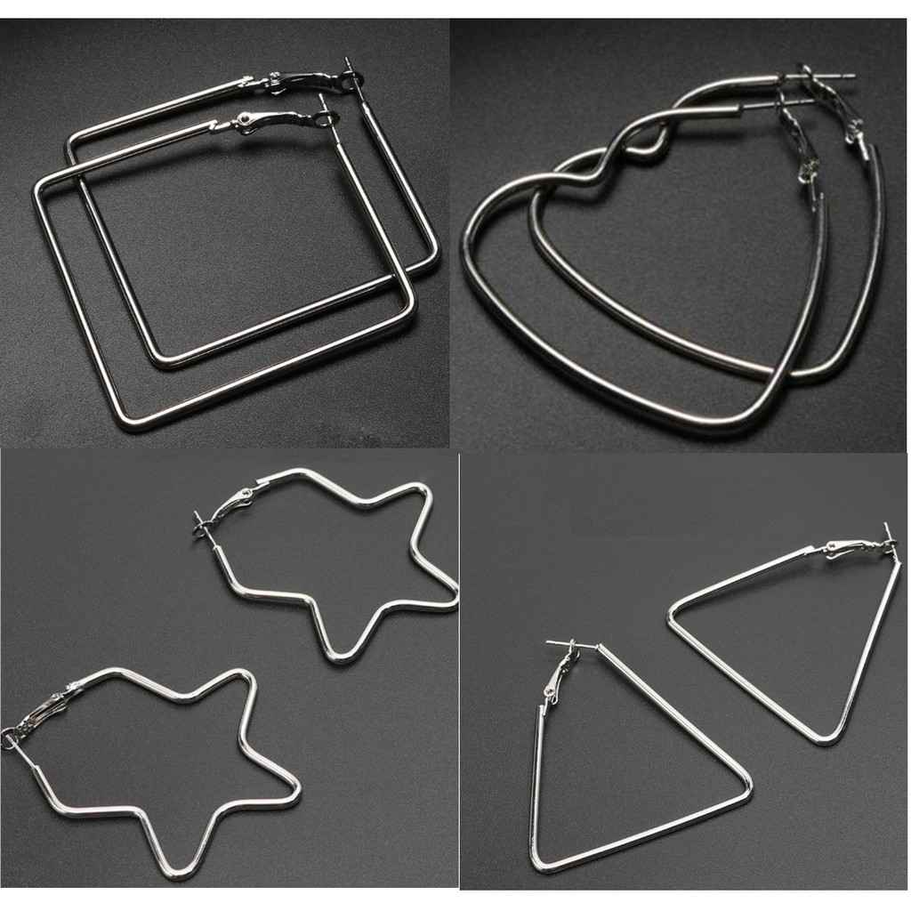 Khuyên Hình hoc nhiều hình bản lớn Size khuyên là khoảng 6cm nha có 4 hình như hình màu: Silver ster, thép bạc Chất liêu: hợp kim phù hợp cho nữ CAM KẾT CỦA Shop 1. Giá cả tốt nhất: Giá luôn tốt nhất, cạnh tranh nhất. Khi mua nhiều hàng, nhiều lần ở Shop bạn sẽ có cơ hội tham gia các trò chơi & nhận được những phần quà thật hấp dẫn. Đặc biệt shop không bao giờ lên giá những sản phẩm đang bán chạy. 2. Mẫu mã đa dạng: Shop mình cung cấp hơn 1000 sản phẩm trang sức và phụ kiện. Luôn luôn đáp ứng nhu cầu cho những khách hàng khó tính nhất. 3. Sản phẩm giống hình: Tất cả sản phẩm của Shopa đều có sẵn hình ảnh cho các bạn tiện lợi trong việc lựa chọn mua hàng online. Shop cam kết sản phẩm giống hình 95-100%.về màu sắc.