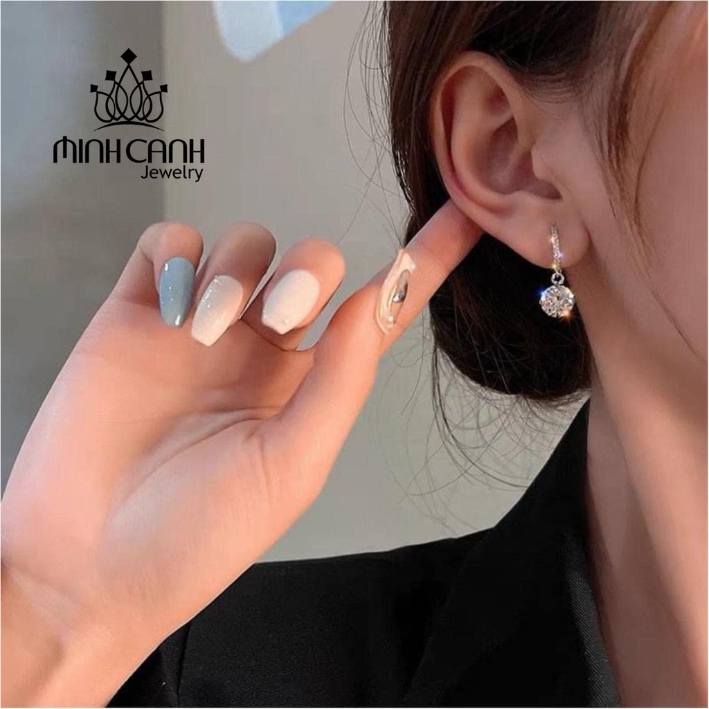 Giới thiệu Khuyên Tai Bạc Bấm Tròn Treo Đá - Minh Canh Jewelry