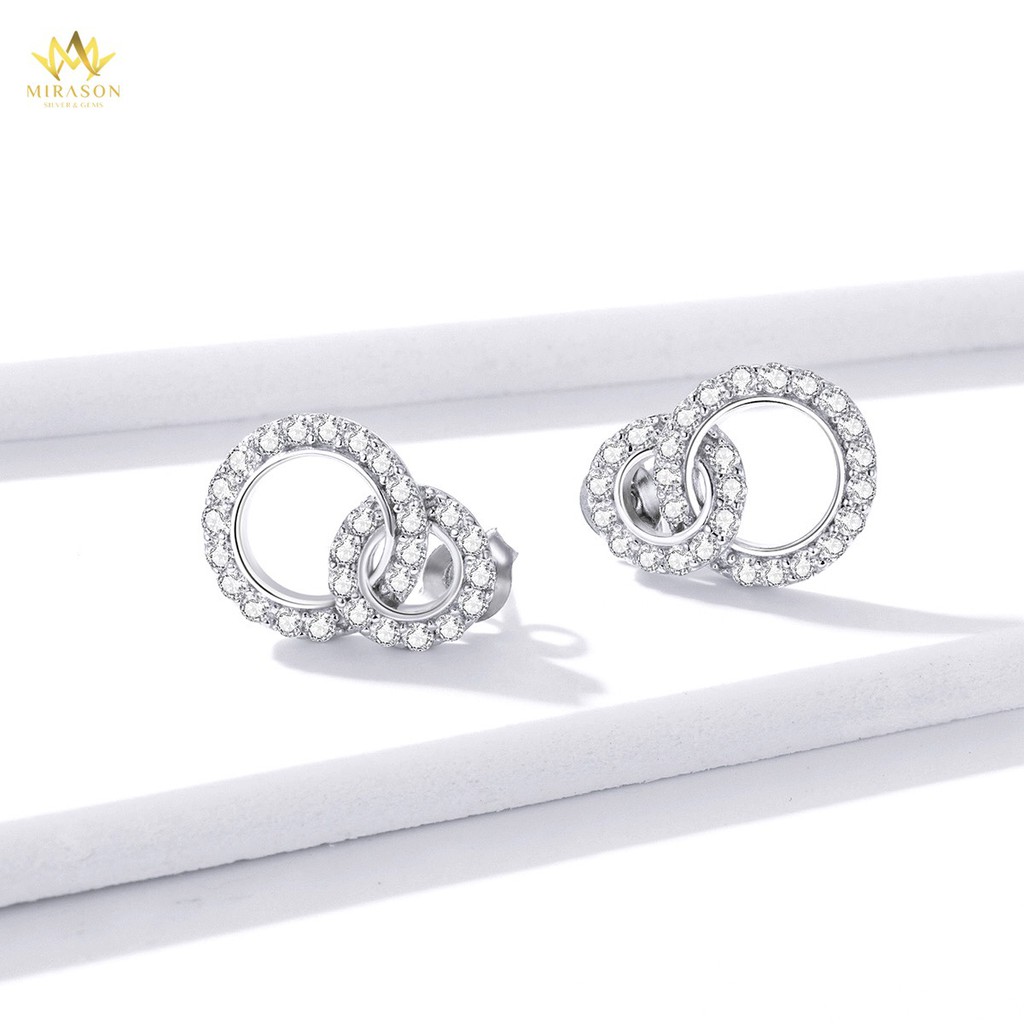 Khuyên Tai Bạc Nữ MIRASON Tròn Móc Nối Nạm Đá Sang Trọng MBT181 - Hoa Tai, Bông Tai Nữ Bạc 925 Cao Cấp