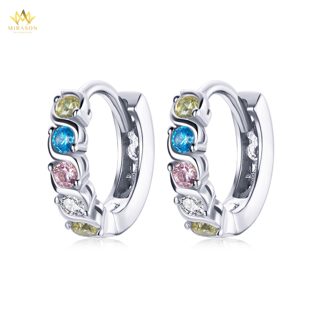 Khuyên Tai Bạc Nữ MIRASON Tròn Đính Đá Nhiều Màu Sang Trọng MBT258 - Hoa Tai, Bông Tai Nữ Bạc 925 Cao Cấp