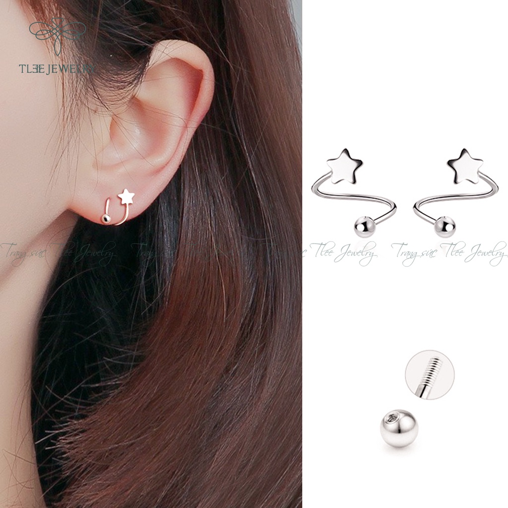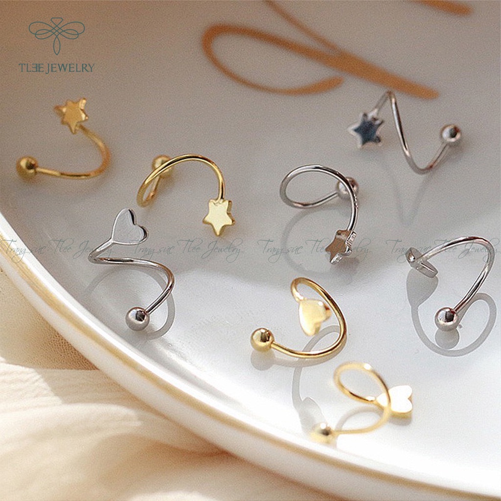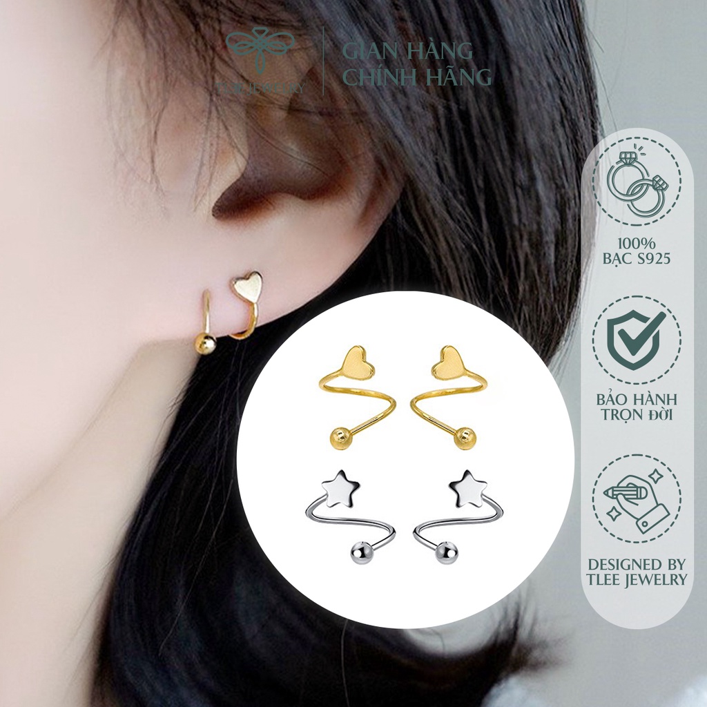 Giới thiệu Khuyên tai bạc nữ TLEE sao xoắn, tim xoắn chốt vặn cá tính NCJ B0106