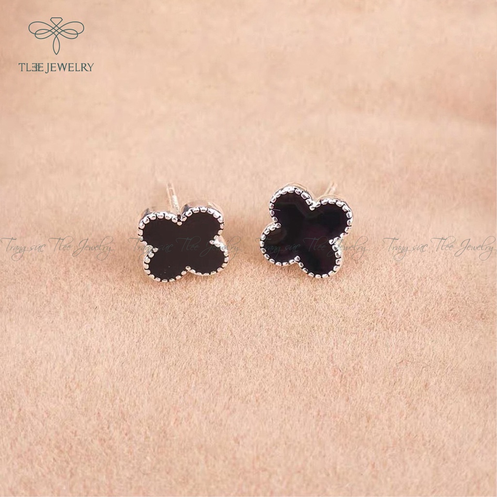 Giới thiệu Khuyên tai bạc TLEE cỏ bốn lá đá đen cao cấp NCJ B0195