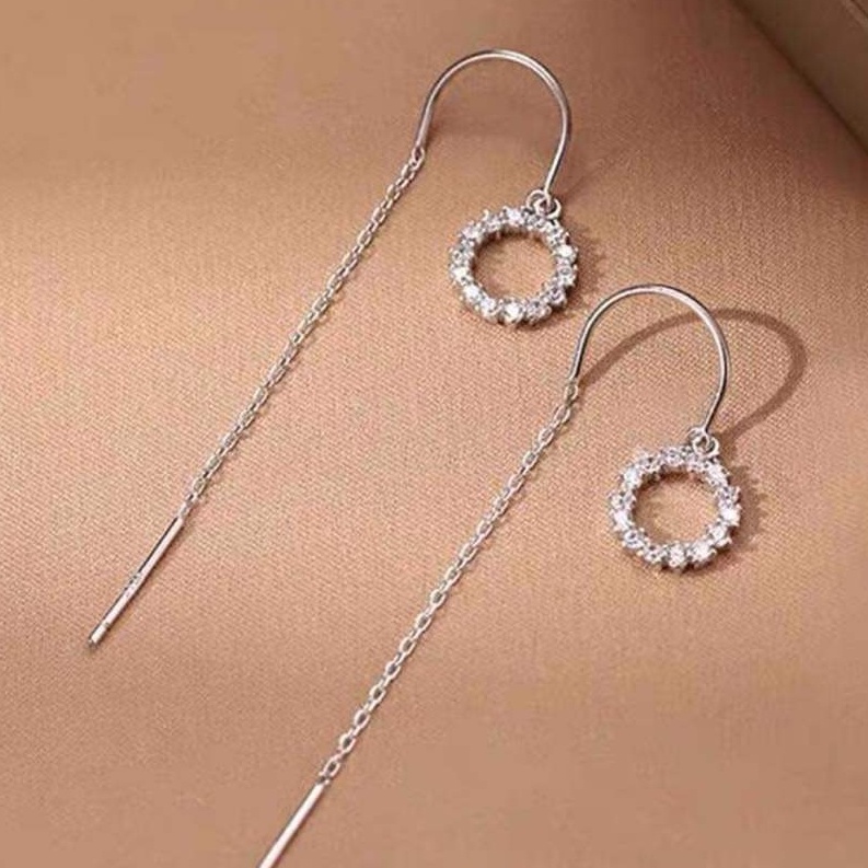 Giới thiệu Khuyên tai bạc Van Jewelry V10737 Khuyên nguyệt quế nạm đá thả tua dài