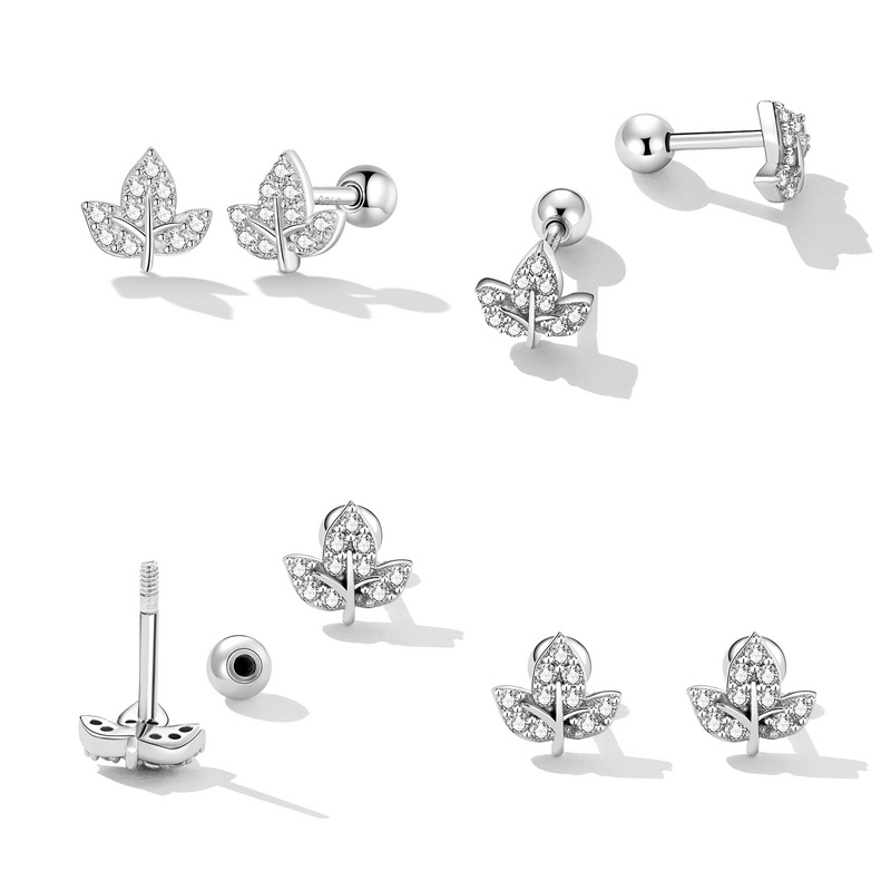 Giới thiệu Khuyên tai Bamoer bạc 925 hình nhánh lá đính đá thời trang sang trọng