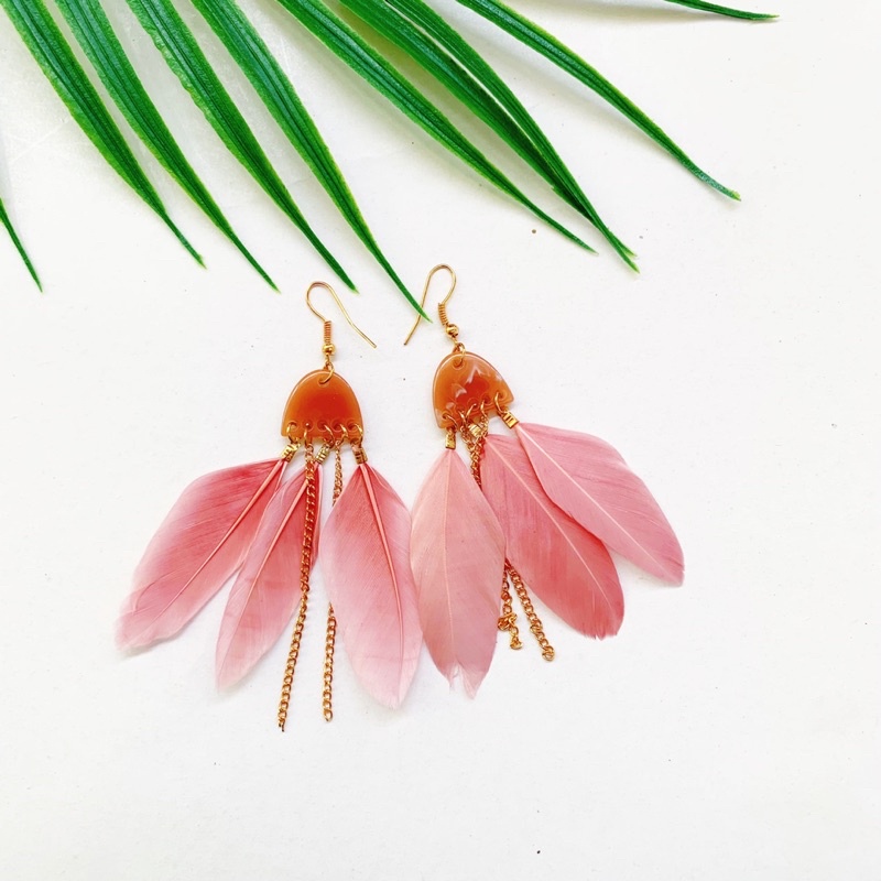 Giới thiệu Khuyên tai bông tai lông vũ, boho, vintage chụp ảnh đi biển, sống ảo xinh-Tiệm Cói Cô Lê