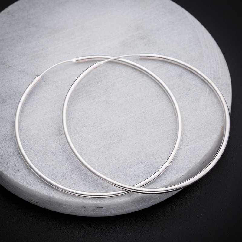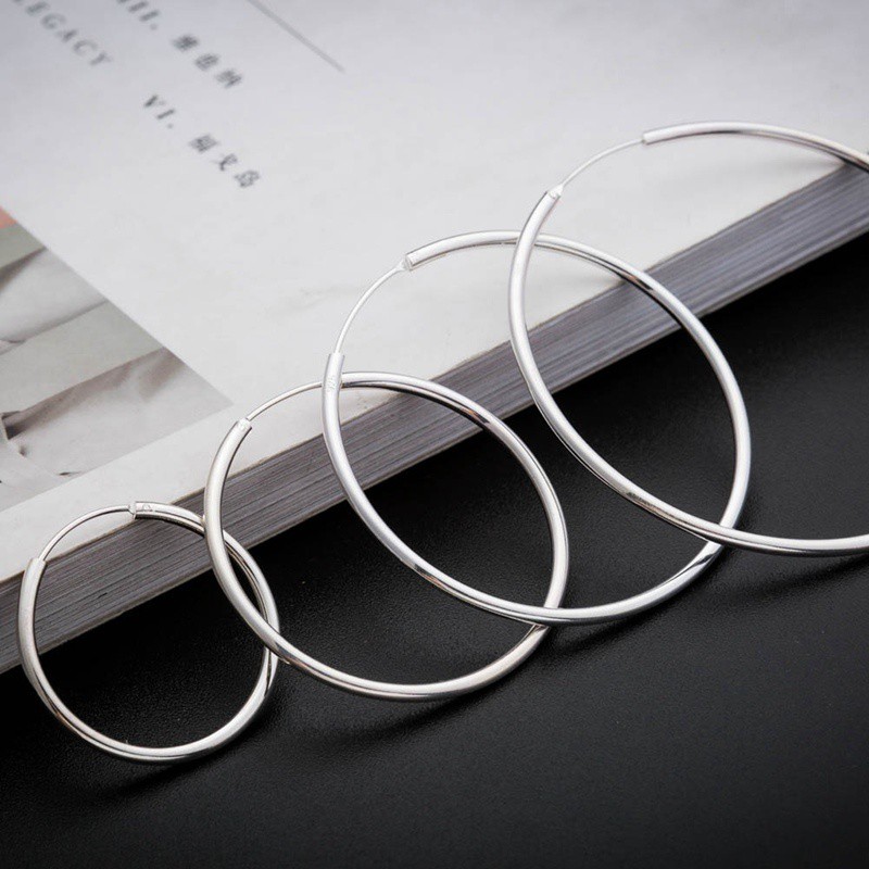 Hàng mới 100% và chất lượng cao !!! Màu: Bạc Chất liệu: Bạc Kích thước: 20,30,40,50,60,70mm Gói hàng bao gồm: 1 Đôi khuyên tai