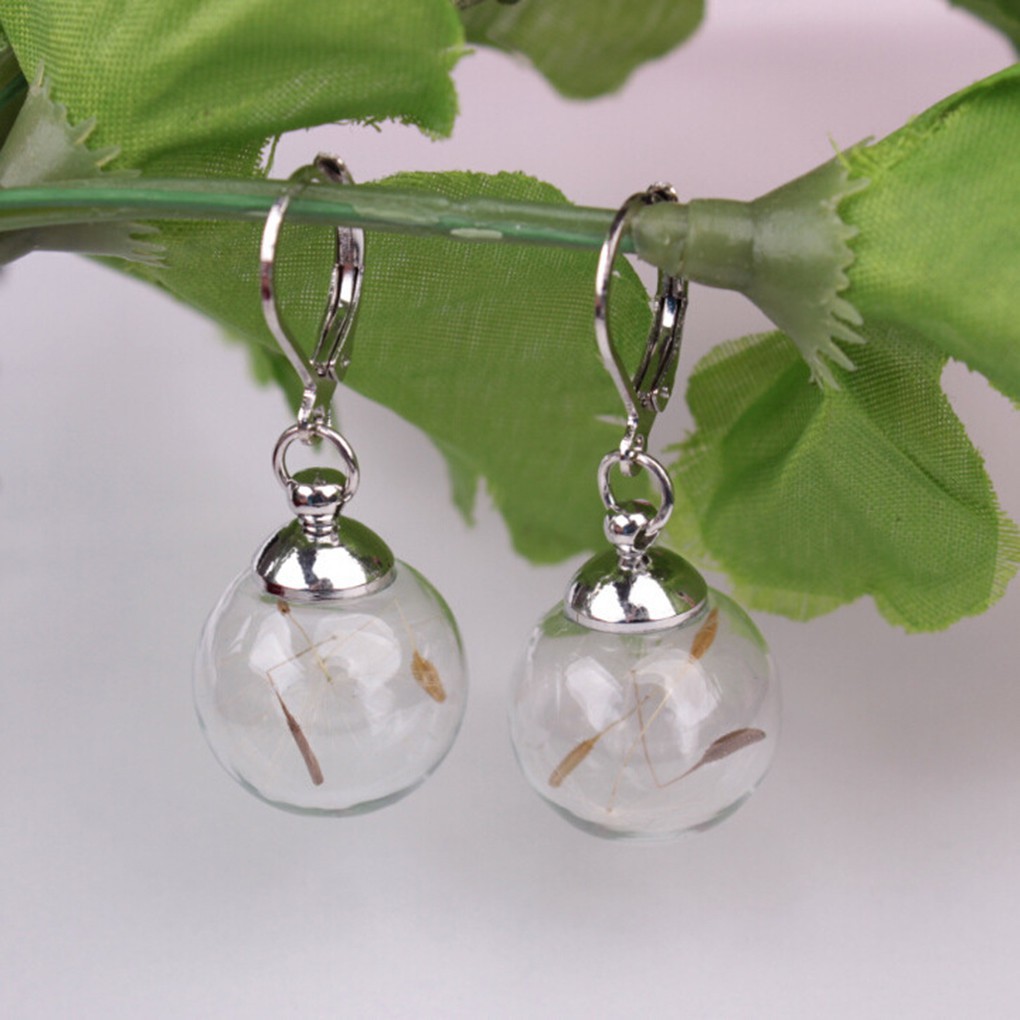 Giới thiệu Khuyên tai hạt kính có hoa bồ công anh khô
