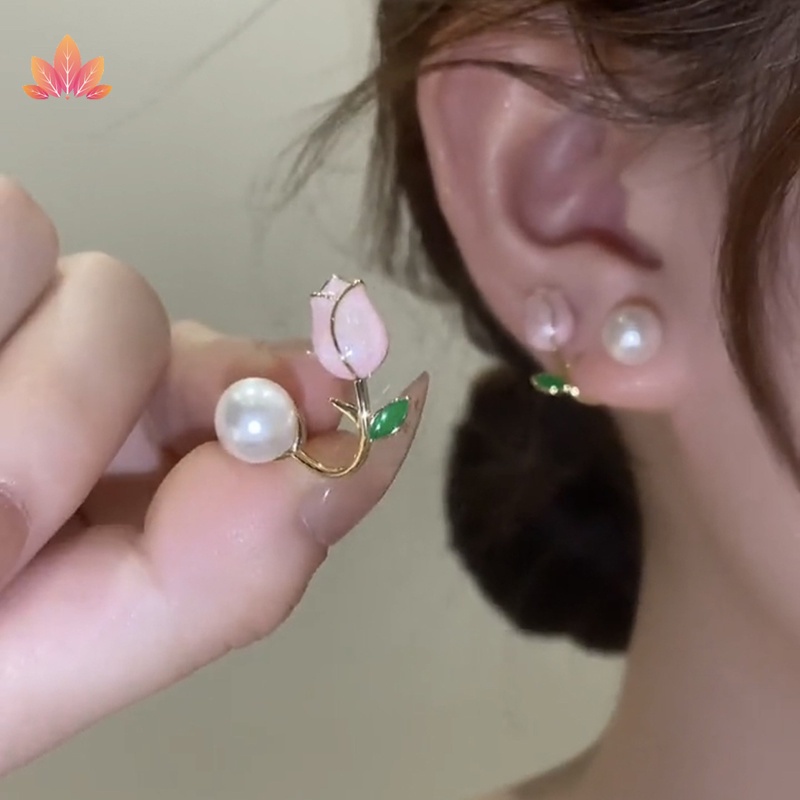 Giới thiệu Khuyên Tai Hình Hoa tulip Đính Ngọc Trai Trước Và Sau JP5