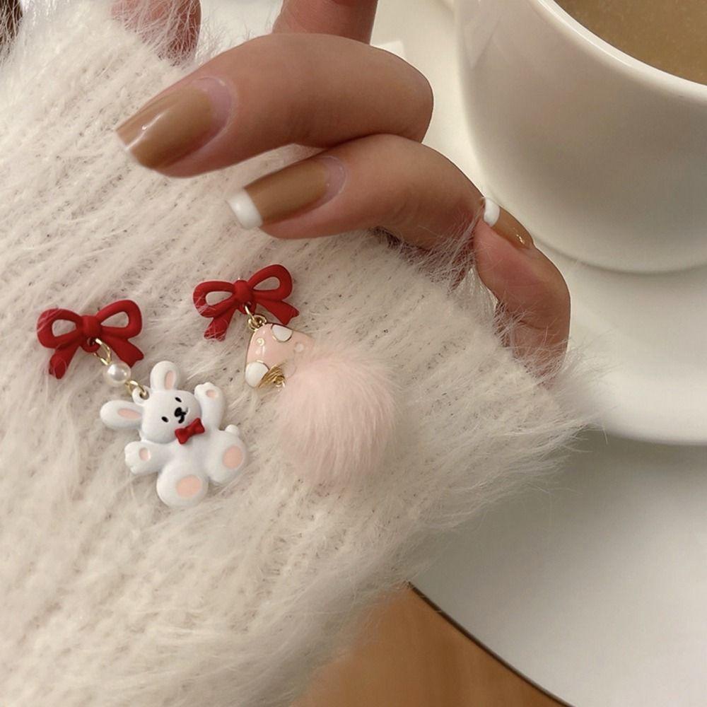 Giới thiệu Khuyên Tai Hình Thỏ Bông Nhung Đỏ Phong Cách Trung Hoa Mừng Năm Mới