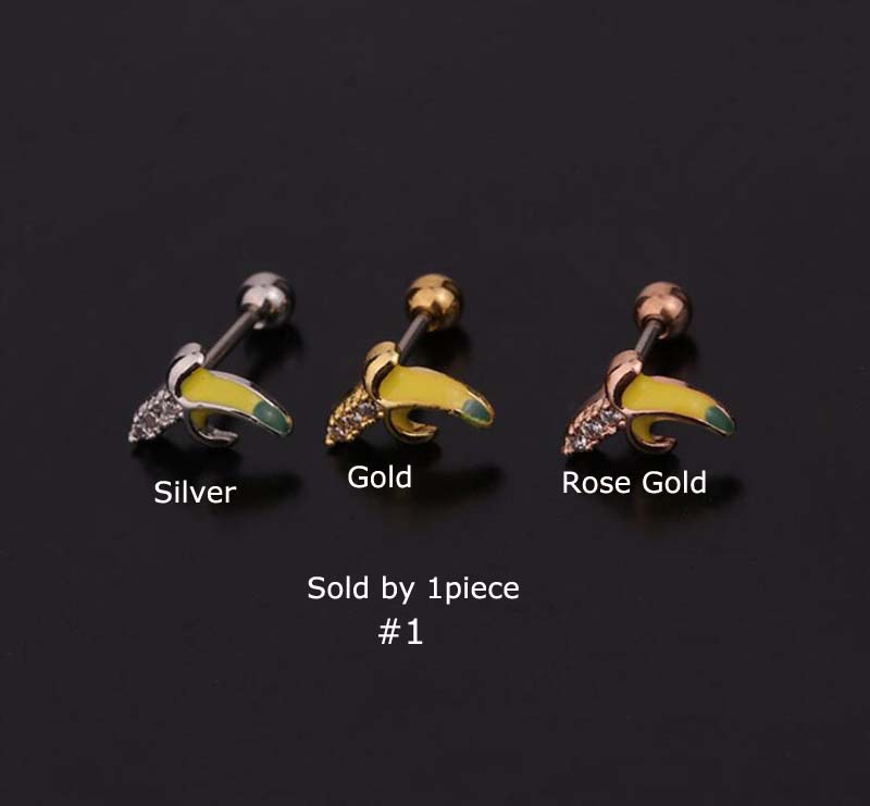 Giới thiệu Khuyên tai hình trái cây xinh xắn bằng thép không gỉ 20G dài 6mm