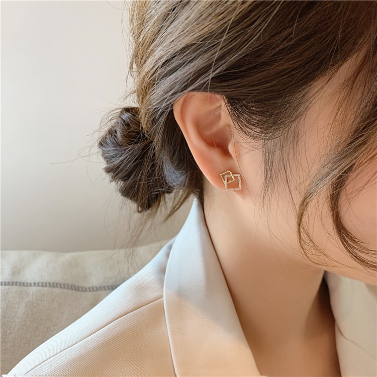 Giới thiệu Khuyên tai mạ bạc 925 kiểu hình học đơn giản cho nữ