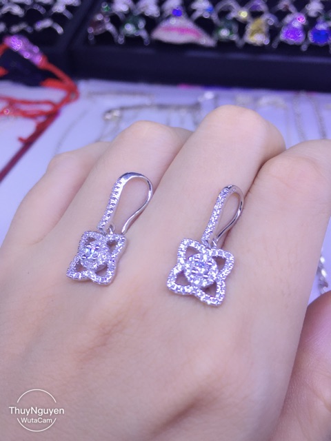 Giới thiệu Khuyên tai móc hoa sang trọng siêu tinh xảo đá nhân tạo bạc thật xi kim