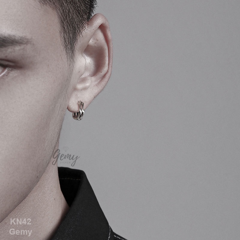 Giới thiệu Khuyên tai nam nữ bạc tròn kép xoắn cá tính, độc đáo, unisex Ali 2 (1 chiếc) | GEMY SILVER KN42