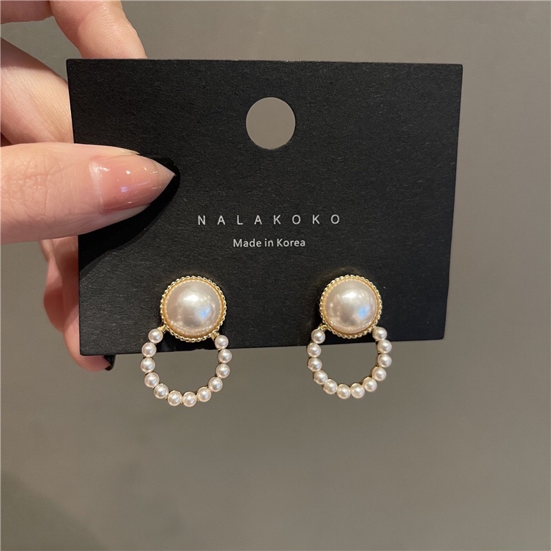 Giới thiệu Khuyên tai nữ hình tròn viền hạt thanh lịch H12