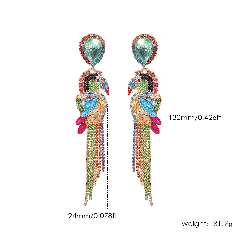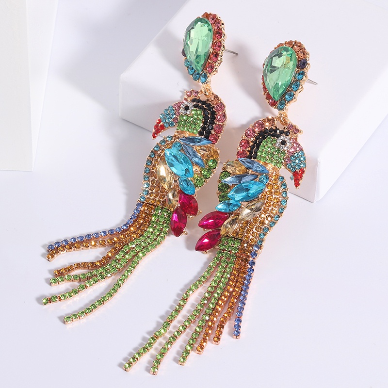 Pinkdudu Thời trang Tua dài Tua Nhiều màu Pha lê Dangle Bông tai Tuyên bố Rhinestone Bird Parakeet Thả bông tai cho nữ PD208