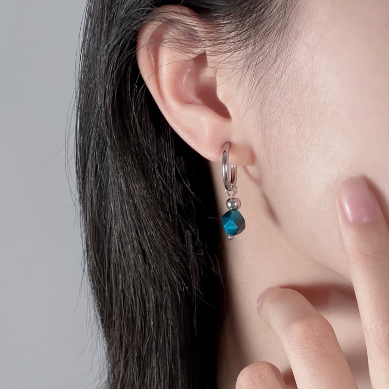Giới thiệu Khuyên Tai Thép Titan Màu Xanh Lam Và Đen Phong Cách hip hop Thời Trang