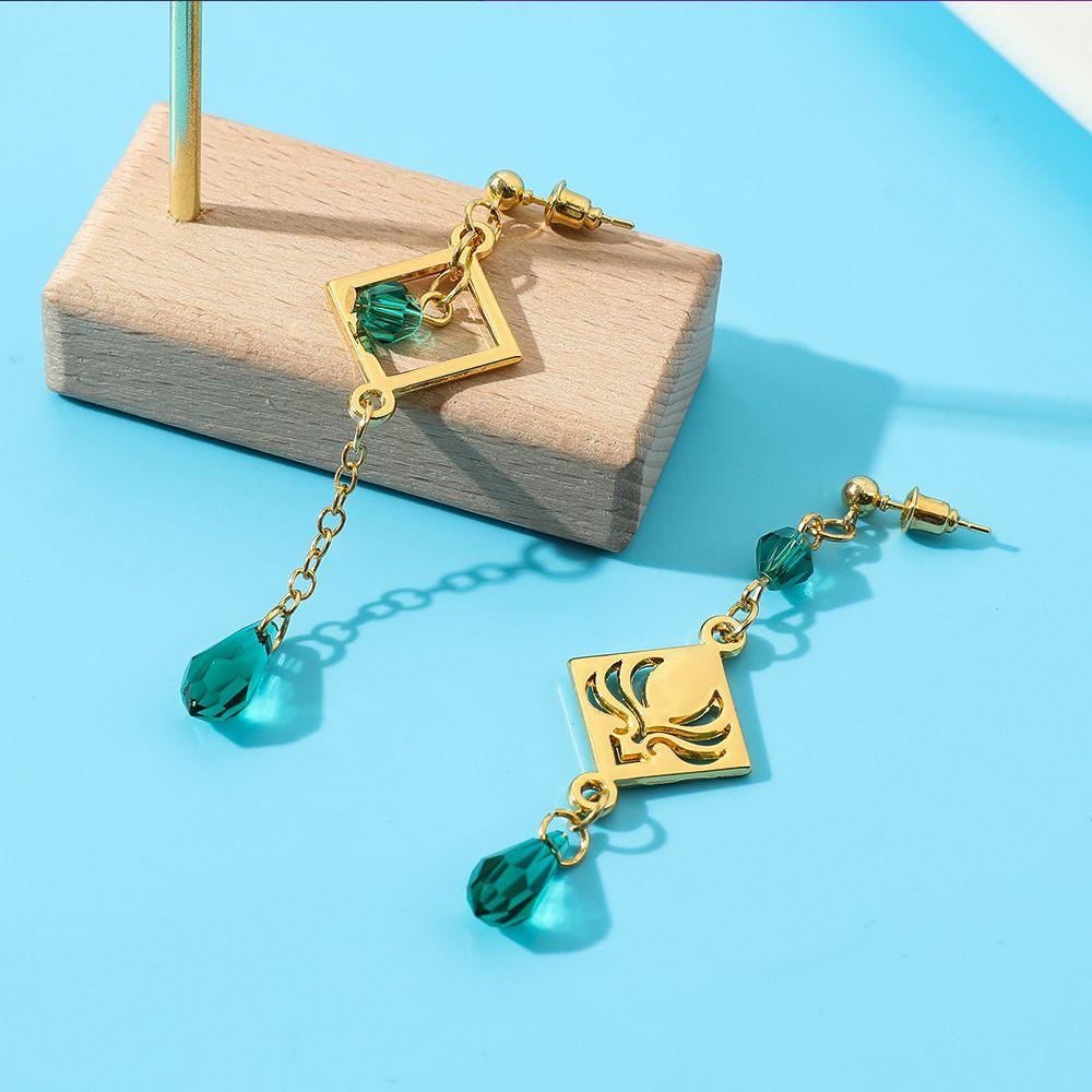 Tránh đeo nó trong bồn tắm Bông tai Anime Genshin Tác động giống nhau Bông tai Tua Bông tai Cosplay Trang sức Hợp kim Lá Ngọc lục bảo Phim hoạt hình Phụ nữ Đàn ông Không đối xứng Thời trang Nhỏ bé Đơn giản