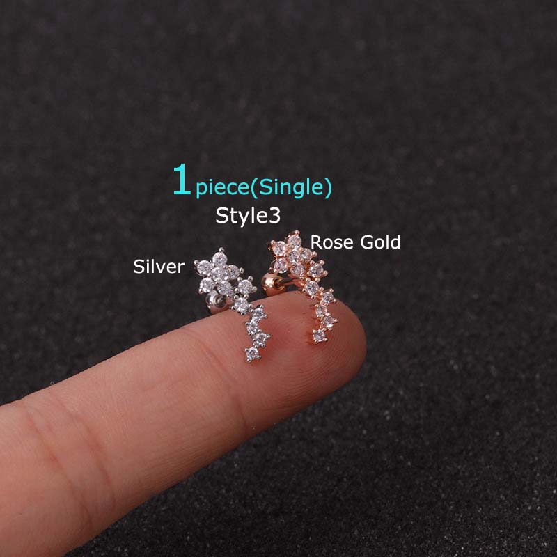1) Chất liệu thanh và bi là thép không gỉ, tất cả các chất liệu tạo hình là đồng và khối zirconia. 2) Kích thước thanh là 20G (0.8mm), chiều dài là 6mm, kích thước bi thép là 3mm. Số lượng: 1 cái (Đơn) #jewelry #earrings #stainlesssteel #cartilageearrings #traguspiercing #helixpiercing #20G #helixpiercing #orbitalpiercing #rookpiercing