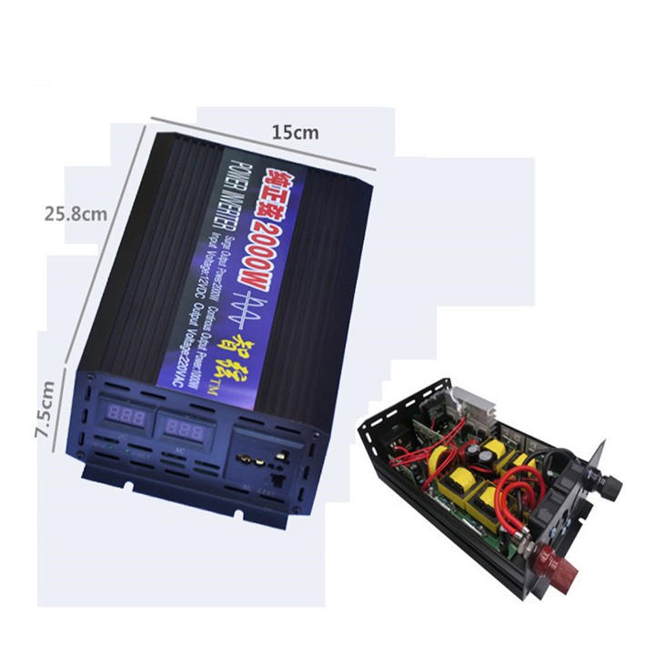 BỘ KÍCH ĐIỆN INVERTER 12V - 220V - 2000W SIN CHUẨN - Máy Thực Phẩm xin giới thiệu sản phẩm Bộ kích điện sin chuẩn 12V - 220V - 2000W BB chức năng dùng đổi nguồn từ bình ắc quy 12V sang 220V sử dụng cho các thiết bị điện trong gia đình. - Bộ đổi điện sin chuẩn giúp nâng cao tuổi thọ của các thiết bị điện trong quá trình sử dụng. - Bộ sản phẩm dễ dàng sử dụng mọi lúc mọi nơi, thiết kế gọn nhẹ, an toàn khi sử dụng. - Thích hợp cho sử dụng các thiết bị điện trong gia đình như: đèn, quạt, tivi, tủ lạnh, máy khoan, máy vi tính, sạc điện thoại,...dùng để dự phòng khi mất điện, hoặc sử dụng tiện nghi trên xe ô tô, những chuyến đi phượt, dã ngoại...