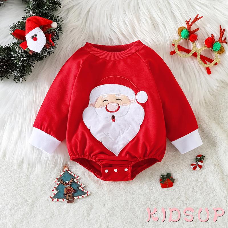 Giới thiệu Kidsup1-bộ Áo Liền Quần Tay Dài Cổ Tròn In Hình Ông Già Noel / Cây Thông Thường Ngày Cho Bé Trai Bé Gái