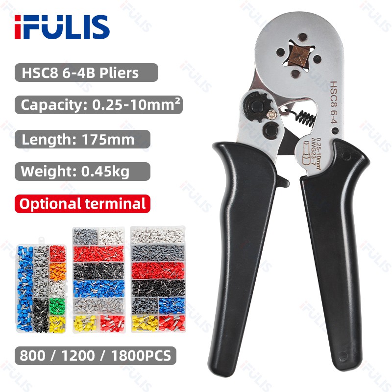 Loại: HSC8 6-4A 6-6A Chiều dài: 175mm / 6,89in Tiêu chuẩn Mỹ Châu Âu: 23-7AWG 23-10AWG 11-5AWG Chất liệu: thép cacbon Các tính năng: Mini Ứng dụng: Máy rút dây Phạm vi uốn: 0,25-6mm 0,25-10mm