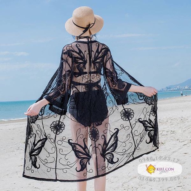 Giới thiệu Kimono, áo khoác đi biển họa tiết bướm xinh