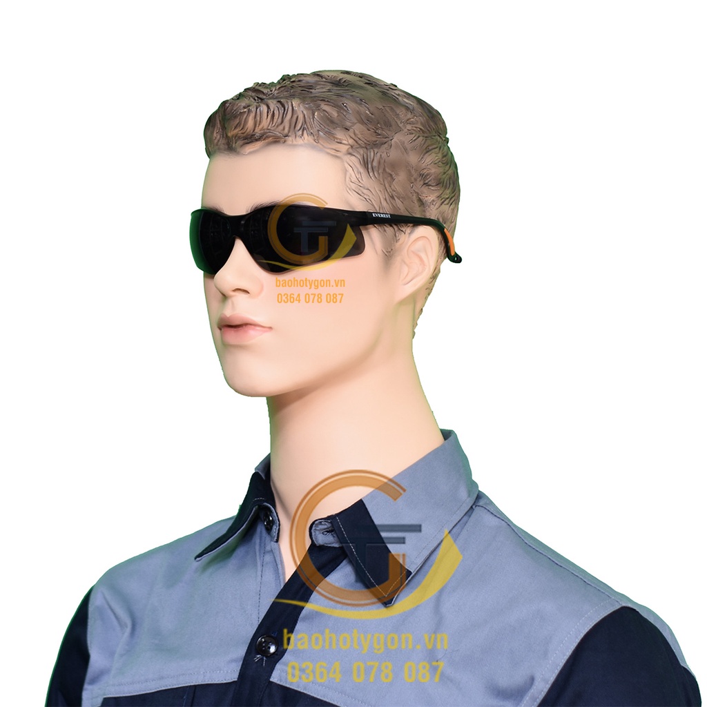 Kính bảo hộ, chống khói bụi Everest - EV202 Xuất xứ: Everest Đài Loan CHất liệu: polycarbonate Màu tròng: Đen Đặc điểm: - Gọng dẻo - Tròng kính trong suốt cao, chông tia UV và các tia sáng mạnh, có hại cho mắt. - Thiết kế ôm sát mặt. Nên sử dụng vào bao ngày, trưa nắng. Sử dụng trong xây dựng, tham gia giao thông, hàn cắt,...