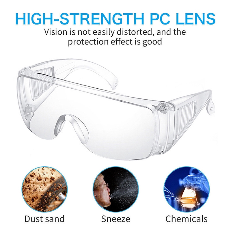 Features: Effectively prevent dust, wind, sand, and impact, prevent virus droplets and saliva from splashing, isolate and protect, protect eyes, and reuse after disinfection with boiling water. Isolate viruses, reduce risks. This product is fashionable and simple in movement. The PC material is light and tough, it does not sink when worn, has anti-twist, super toughness, can be arbitrarily kneaded and is not easy to break. The surface of the PC lens has been specially strengthened for many times to prevent friction and impact. The curved design of the lens makes the field of vision wider, clearer, and more durable. Suitable for a variety of head shapes, suitable for adults and children. Safety glasses to prevent flying particles, dust, paint and soot from splattering during work. Color: Transparent Material: ABS There is 2-3% difference according to manual measurement. please check the measurement chart carefully before you buy the item. 1 inch = 2.54 cm Please note that slight color difference should be acceptable due to the light and screen. What You Get: 1 x Safety Goggles