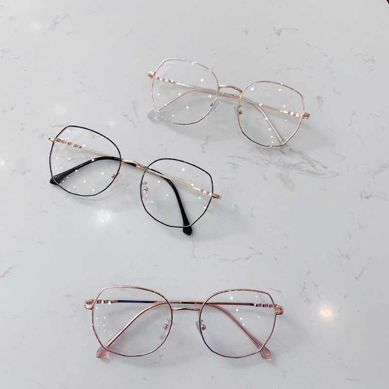 Kính cận thời trang nam nữ gọng kim loại hình đa giác, mắt kính không độ phong cách Hàn Quốc ABICA 045
