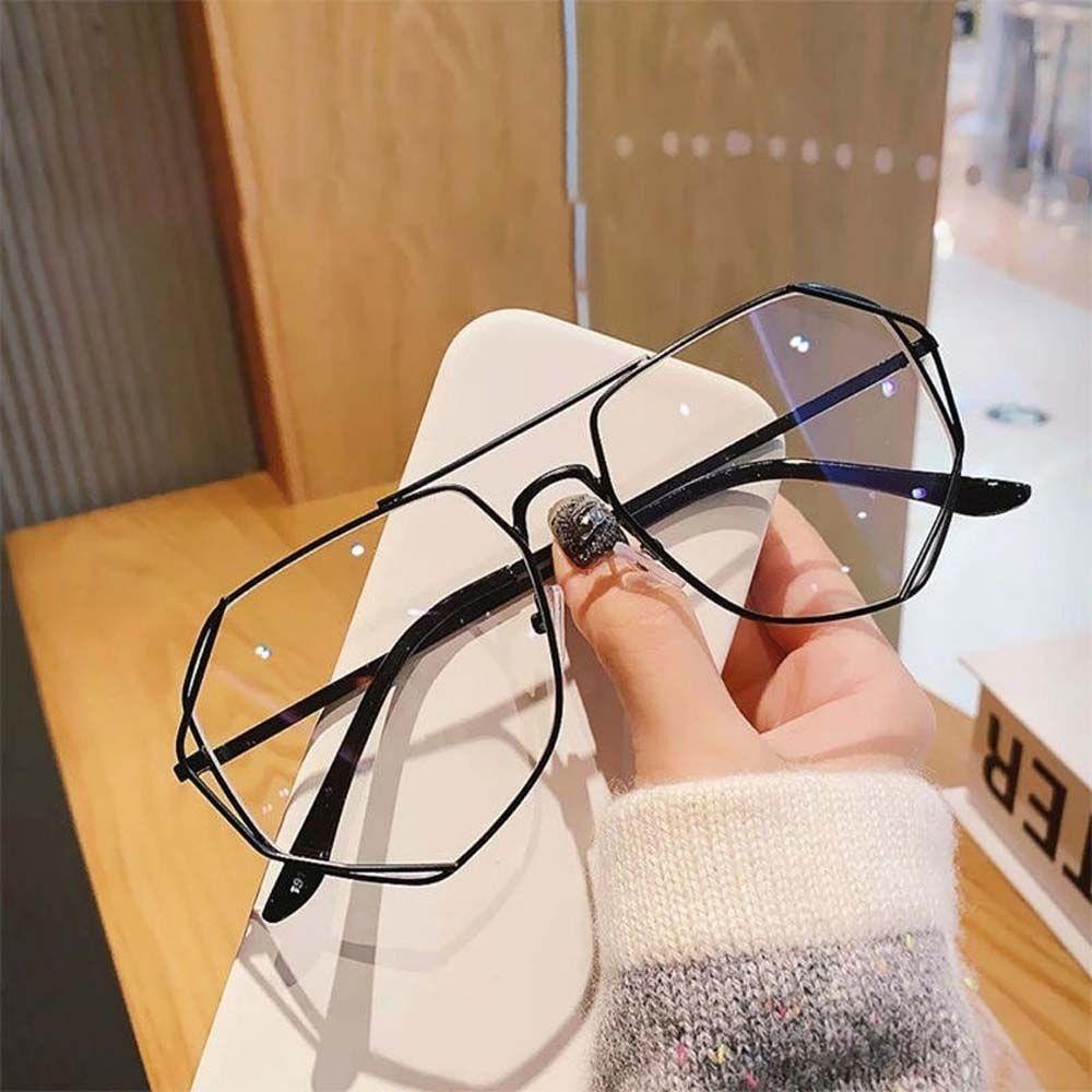 Chiều dài của chân gương: 136 mm Kính chống bức xạ Kính chống ánh sáng xanh Kính đeo mắt nữ Kính chống bức xạ Phong cách Hàn Quốc Kính mắt máy tính Polygon Khung lớn Kim loại rỗng trong suốt Ống kính quang học Màu vàng đen Màu bạc Thời trang